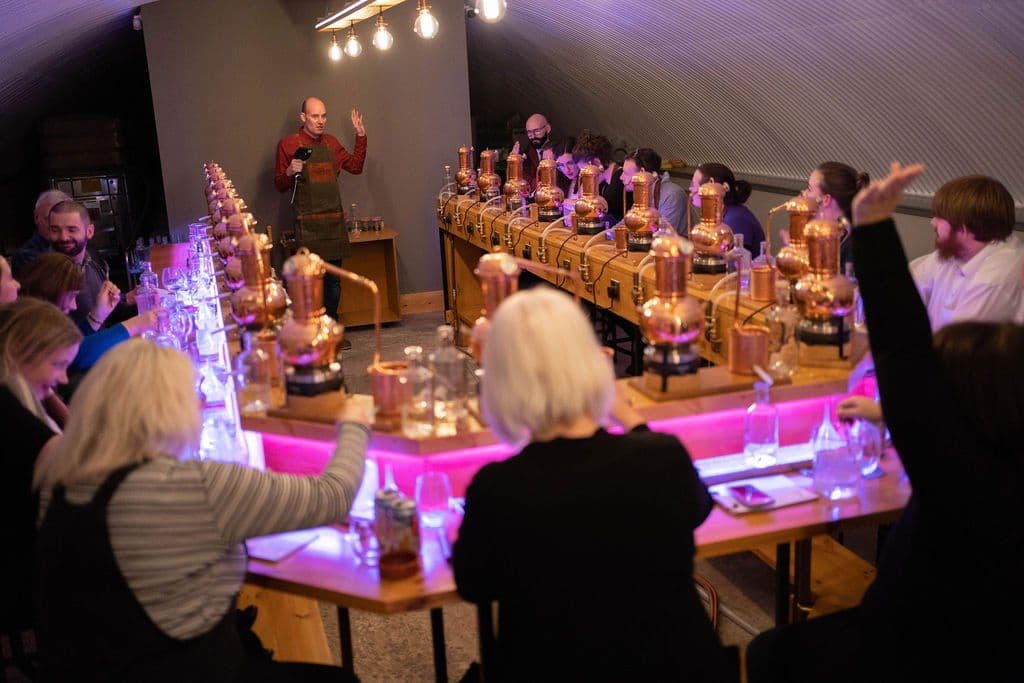 Willkommen in der City of Aberdeen Distillery & Gin School - der ersten Destillerie in Aberdeen seit fast 80 Jahren und Heimat der Aberdeen Gin School. Die Brennerei, die von zwei Freunden betrieben wird, liegt im Herzen der schottischen Stadt Aberdeen (der silbernen Stadt mit dem goldenen Sand) in einem historischen Eisenbahnbogen, in dem echte Aberdeen Gins in kleinen Mengen entwickelt und destilliert werden. Die Brennerei ist für Besucher geöffnet, die eingeladen sind, von den Demi-Johns zu probieren (eine Flasche abzufüllen), eine Brennerei-Tour zu genießen, eine Gin-Verkostungs-Meisterklasse abzuhalten oder sogar ihre eigene 70-cl-Flasche Gin in der Gin School Experience zu destillieren.