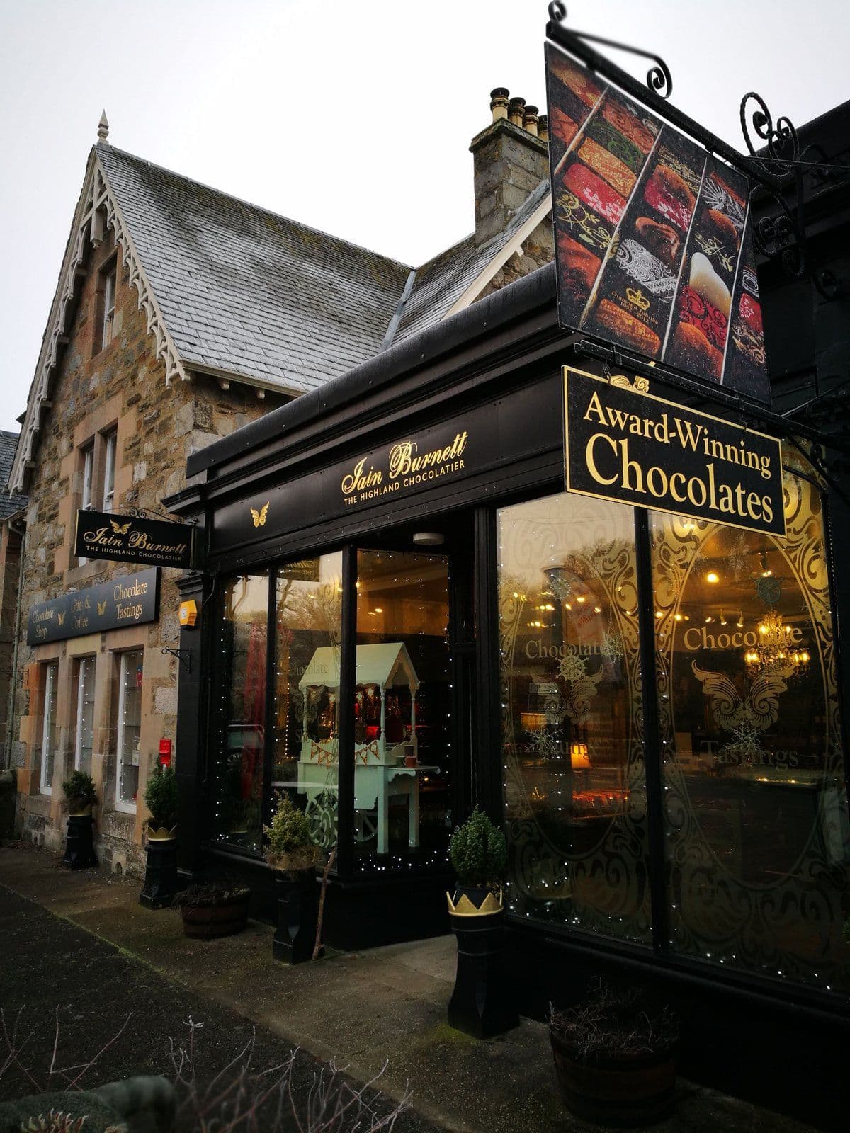 Eine 4-Sterne-Touristenattraktion und ein Schokoladenparadies in einer zauberhaften Umgebung, nur 5 Minuten von der A9 entfernt. Stöbern Sie in den Schokoladen- und Geschenkeläden, genießen Sie eine geführte Schokoladenverkostung und erfahren Sie mehr über die Welt der Gourmet-Schokolade. Machen Sie eine Reise durch die Geschichte der Schokolade, die Methoden der Kakaoverarbeitung und wenig bekannte Fakten über Schokolade in der kleinen multimedialen Schokoladenausstellung. Entspannen Sie sich in der Chocolate Lounge mit Ihrer persönlichen Auswahl an köstlichen Pralinen, preisgekrönter heißer Schokolade, feinem Tee, Kaffee und Kuchen und machen Sie zum Abschluss einen Spaziergang entlang des schönen Flusses Tay.